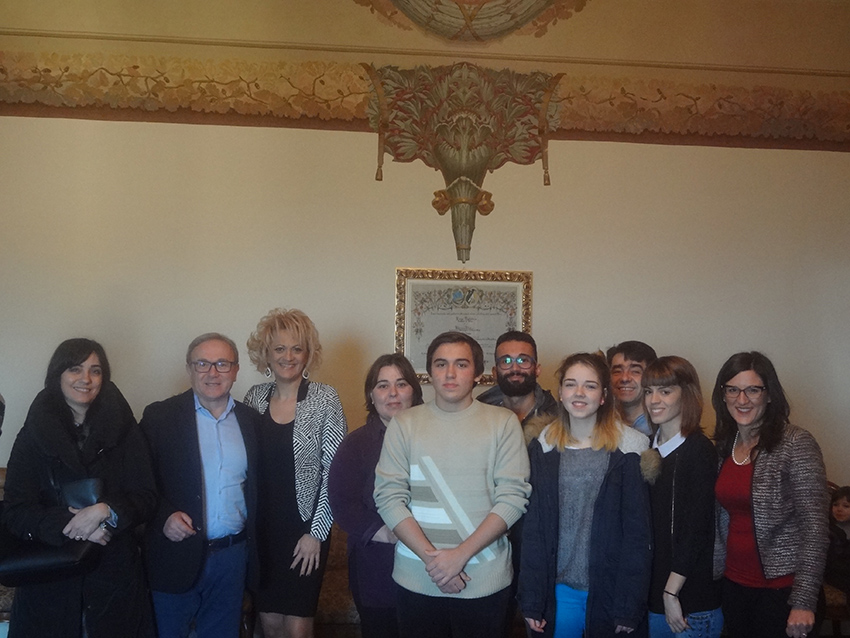 Il 12 dicembre, presso l’ufficio del sindaco di Treia, Franco Capponi (al centro, nella foto, con gli studenti premiati), sono stati rilasciati gli attestati ai vincitori delle borse di studio intitolate a «Franco Vittorio Pedaci ed Erina Cervigni Pedaci» e all’«Insegnante Zaira Zuccari». Protagonisti quattro giovani studenti del territorio, distintisi per profitto e condotta. L’istituzione della borsa di studio «Pedaci-Cervigni» si deve all’avvocato Vittorio Cervigni che, nel 1944, volle tale riconoscimento per onorare la memoria della figlia Erina e del nipote Franco Vittorio Pedaci, tragicamente deceduti in un incidente stradale. Le borse di studio intitolate all’insegnante «Zaira Zuccari», sono state promosse nel 1998 per volontà della figlia Anna Maria Zuccari. Per l’anno scolastico 2014-2015, sulla base delle domande pervenute, sono risultati vincitori: Dora Cirioni, Martina Medei, Matteo Guardati e Gabriel Petrea Rares. A fare gli onori di casa sono stati lo stesso sindaco Capponi, l’assessore ai Servizi Sociali, Alessia Savi, e il responsabile dei servizi alla persona, Orazio Coppe. «Sicuramente questi ragazzi, pur essendo ancora giovani – ha affermato il Sindaco -, stanno interpretando nella maniera migliore il ruolo di studenti e di cittadini. Questi giovani sono il nostro futuro – ha concluso Capponi -, su di essi e su quanti vorranno imitarli e, possibilmente superarli, dobbiamo investire le nostre risorse».