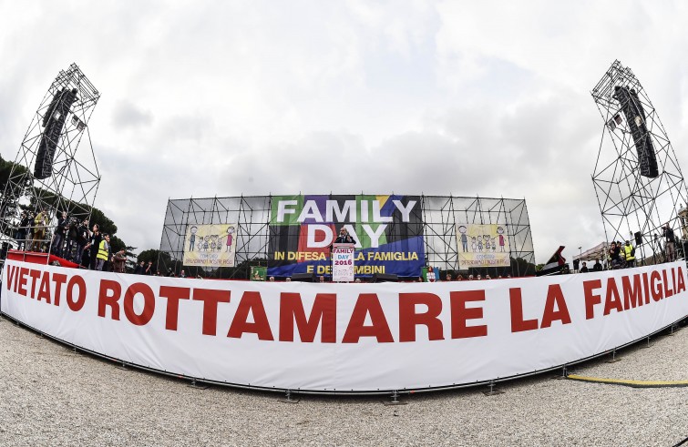 Presenti anche le istituzioni. «I gonfaloni della Lombardia del Veneto e della Liguria», ha rimarcato Gandolfini, che si è subito rivolto ai politici e parlamentari presenti, in vista della imminente discussione al Senato del ddl Cirinnà: «Voi siete la voce e gli interpreti di questa piazza». Come a dire che «la famiglia non può essere un istituto ultimo e negletto della società italiana». Chi ha orecchie per intendere, intenda, insomma. «Abbiamo un welfare per le famiglie che ha ampi buchi», ha fatto notare Gandolfini: che ha tuonato: «Nel nostro Paese un milione e 420 mila famiglie sono al di sotto della soglia di povertà». Approvare leggi come il ddl Cirinnà sulle unioni civili «significherebbe lo stravolgimento dell’essenza della natura umana e a questo dobbiamo con tutte le forze opporci, mostrando il volto bello della famiglia, della solidarietà nella famiglia e tra le famiglie quella che ha garantito la tenuta del Paese negli anni della grande crisi». E tra gli applausi della folla è arrivato l’appello, dal sapore di avvertimento, al mondo politico: «In questa piazza ci sono persone di tutte le idee politiche, ma dobbiamo tenere ben presente quanti ci stanno aiutando e quanti invece ci oscurano. Seguiremo i prossimi passaggi della legge minuto per minuto e valuteremo chi ha raccolto il messaggio della piazza e chi lo ha preso per metterselo sotto i tacchi. Al momento delle elezioni dovremo ricordare chi si è messo dalla parte della famiglia e dei bambini e chi se ne sarà dimenticato rendendo possibile l’abominevole pratica dell’utero in affitto» o della stepchild adoption (adozione del figliastro) da parte di uno dei componenti dell’unione omosessuale.