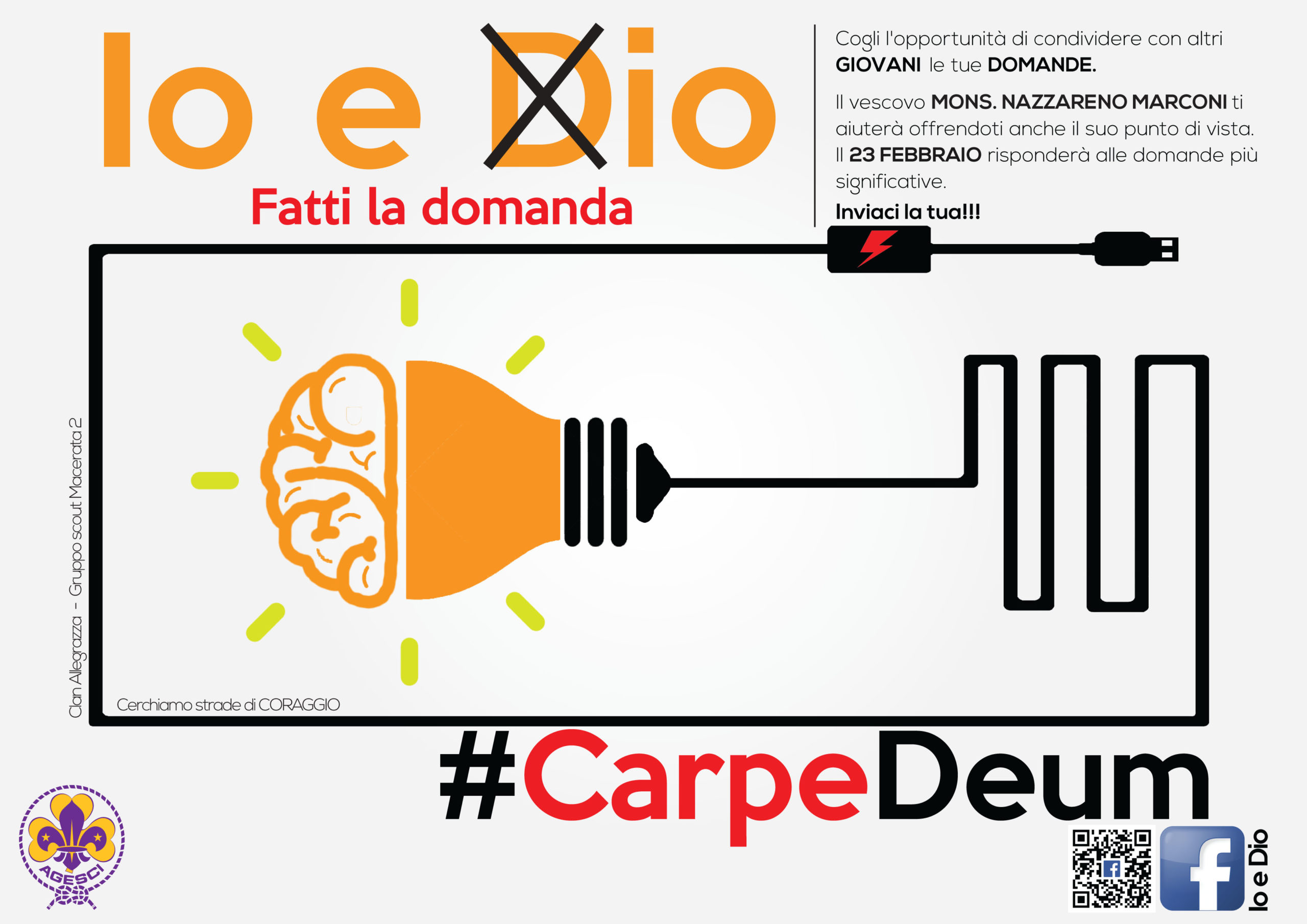 Continuando a camminare lungo “strade di coraggio”, il gruppo scout Clan “Allegrezza” MC2, ha raggiunto notevoli progressi nella loro iniziativa di inchiesta rivolta ai giovani, “Io e Dio” (leggi qui l’articolo). Lo scopo prefisso dal Clan era quello di coinvolgere i giovani della città nel loro cammino alla ricerca della fede e alla scoperta del loro rapporto con Dio. Facendo appoggio sulla disponibilità degli studenti, sono state raccolte più di 500 domande che vertono su diversi ambiti e che possono essere riassunte in sei grandi tematiche: