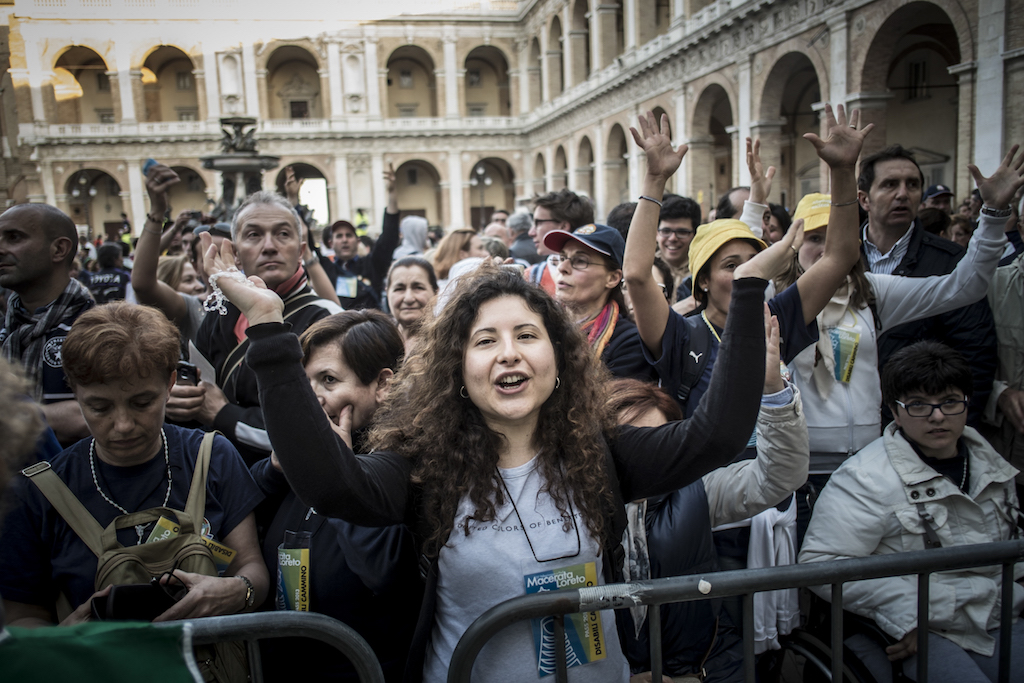 «Il pellegrinaggio è un simbolo della vita, ci fa pensare che la vita è camminare, è un cammino. Se una persona non cammina e rimane ferma, non serve, non fa nulla. Pensate all’acqua: quando l’acqua non è nel fiume, non va avanti, ma è ferma, si corrompe […]. Per favore: non fermatevi nella vita!». Così papa Francesco, al telefono, come già nel 2013 e nel 2014, con i pellegrini riuniti allo Stadio Helvia Recina di Macerata il 6 giugno 2015.