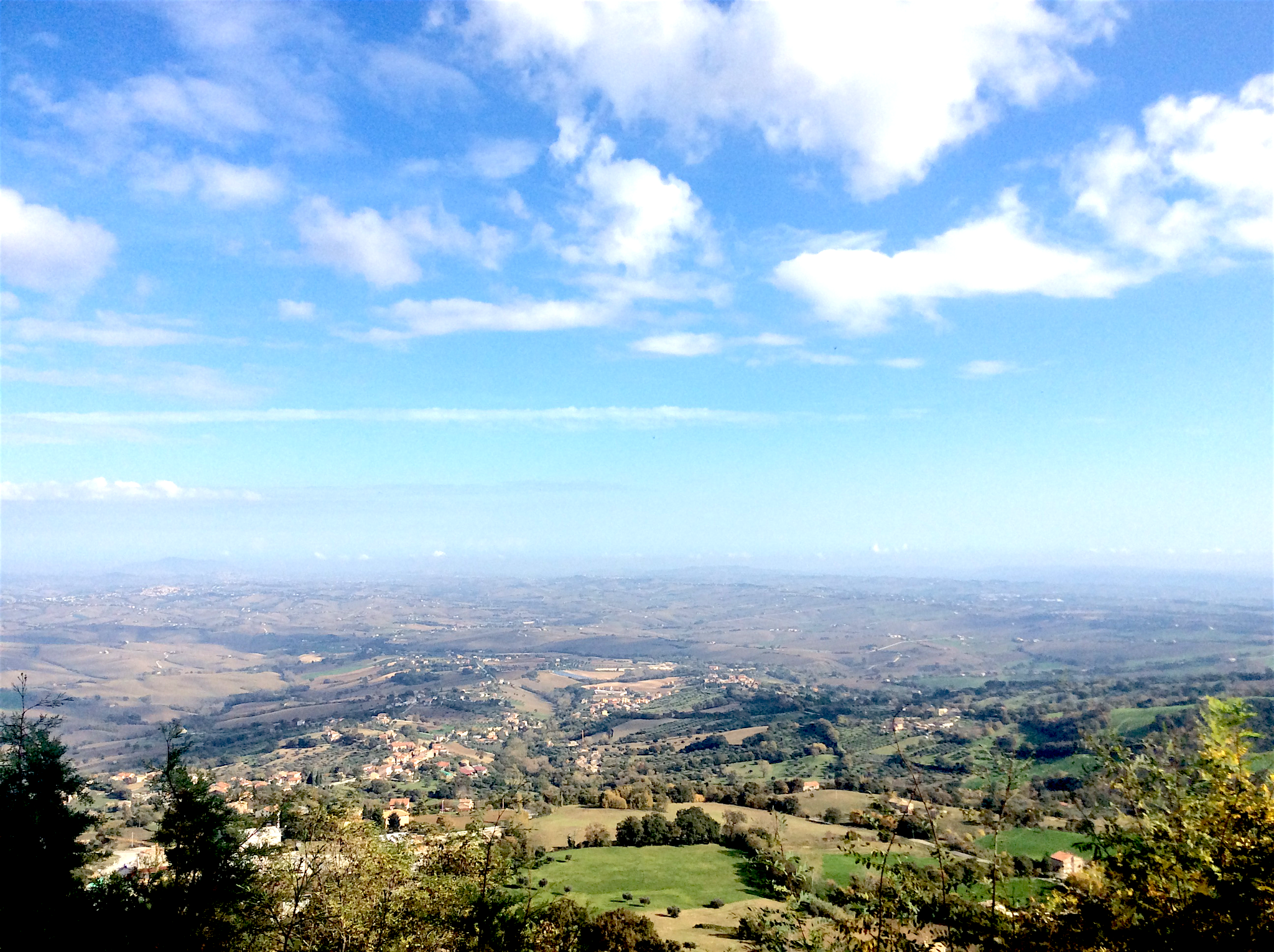 All’orizzonte montagne che paiono sospese nel cielo e la marina che si scorge remota, la campagna verdissima, coltivata a giardino, vibra d’una luce speciale. Forse perché autentico cuore della Marca, quello su cui s’adagia la Diocesi è un territorio incantato, dai mille volti e ognuno irripetibile, fin dall’antichità profondamente plasmato dall’esperienza cristiana. A un viaggiatore che escluda la fretta, lo stesso paesaggio comunica spiritualità: strade poetiche tra querce secolari, colline disegnate con mano d’artista che ispirarono l’Infinito leopardiano, dolci colli che rotolano con forme rigonfie verso l’Adriatico, e su ognuna una città medievale e rinascimentale, paesi turriti, dorati al tramonto, castelli, casolari o antiche pievi. Opera di Dio e opera dell’uomo, una profonda corrispondenza vissuta da generazioni di santi e magari contemplata da tanti pellegrini che percorrevano – e percorrono – il selciato della Via Lauretana.