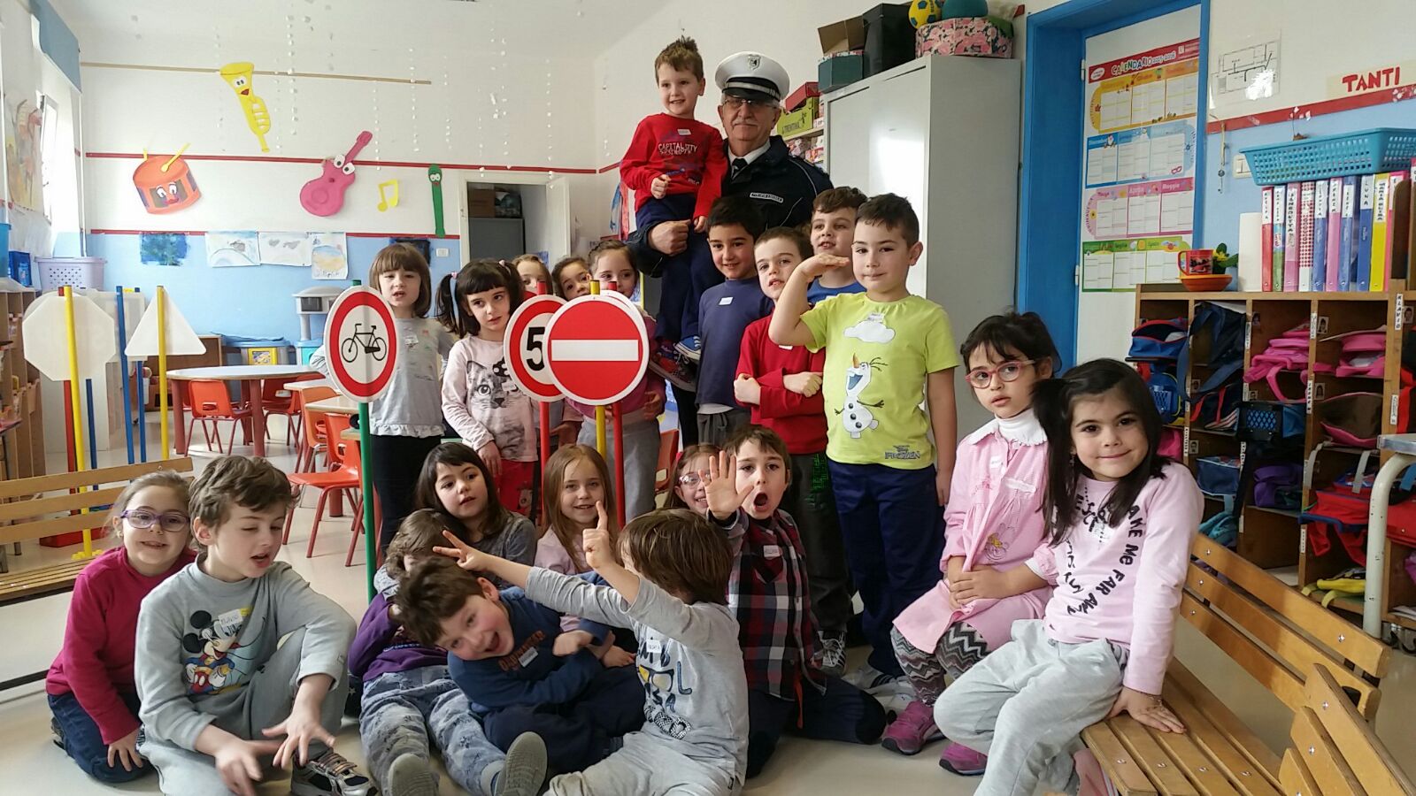 Il Capitano Vincenzo Berrè, per una volta, ha abbandonato paletta e fischietto per indossare gli abiti di maestro confrontandosi a viso aperto con i bambini della scuola dell’Infanzia di via Camerano. La sua figura autorevole, valorizzata dai tantissimi anni di servizio, è servita a dare agli alunni un insegnamento in più.