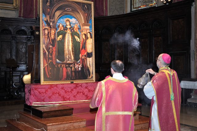 E sarà ancora questa tela a muoversi, nonostante gli oltre due metri e mezzo di altezza, nuovamente in pellegrinaggio con tappe nei tredici Comuni diocesani durante i prossimi mesi. Inizia infatti il 2 aprile la seconda parte di quest’Anno Santo con Maria ancora una volta pellegrina tra la sua gente.