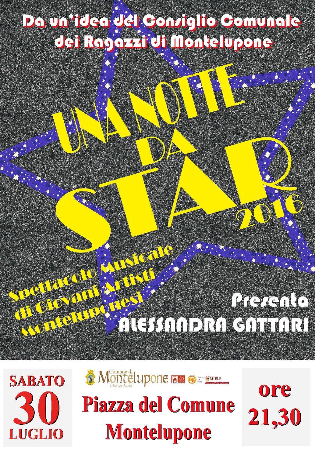 Sabato 30 luglio, dalle ore 21.30, la splendida cornice della piazza del Comune di Montelupone ospiterà usa serata speciale. Alessandra Gattari, direttore della corale “San Francesco”, presenterà Una notte da Star, manifestazione ideata e voluta dal consiglio comunale dei ragazzi di Montelupone, allo scopo di valorizzare le capacità artistiche dei giovani dalla comunità.
