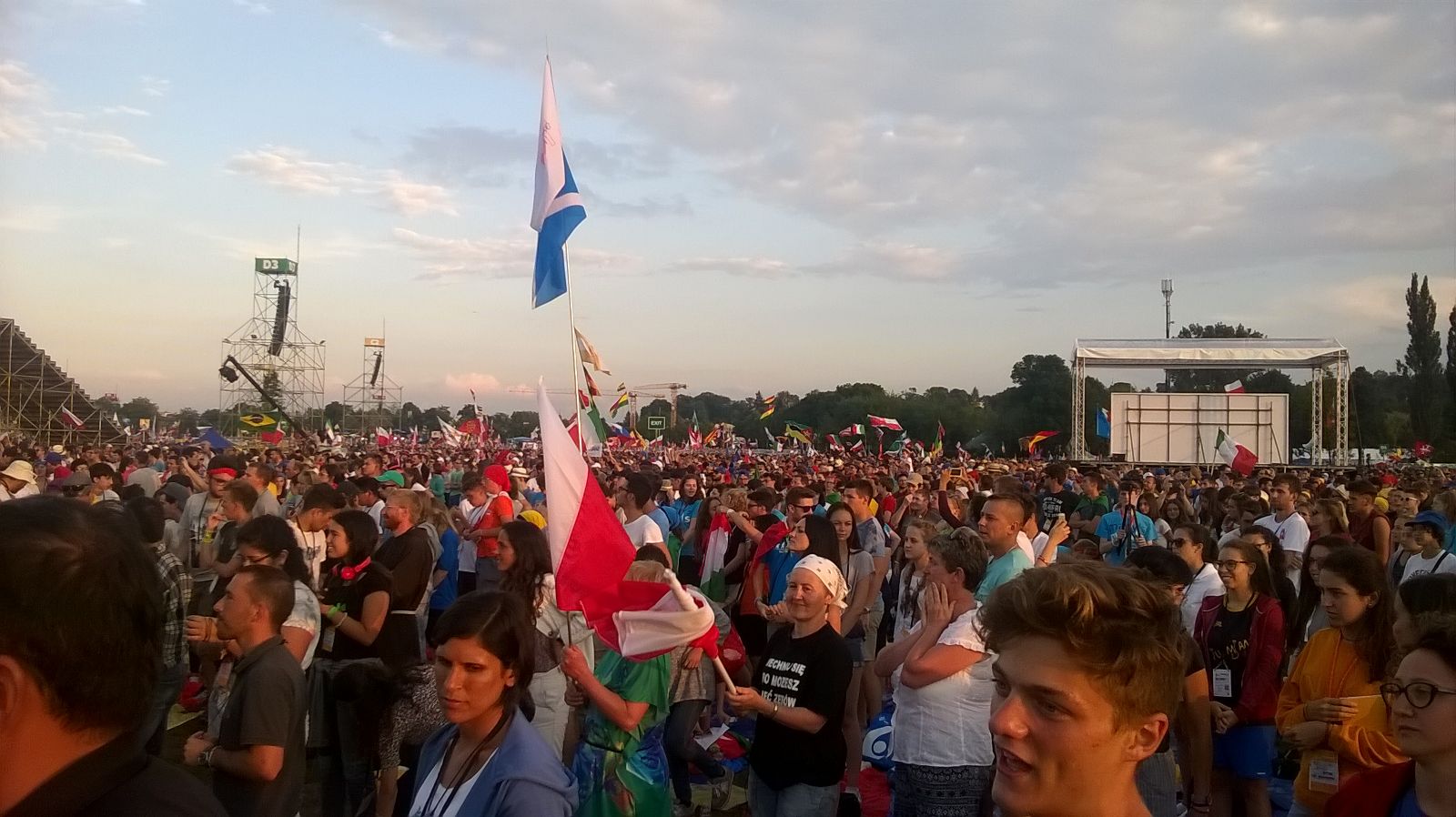 Dopo la Santa Messa, presieduta dal cardinale, e il pranzo offerto dalla parrocchia, ci siamo diretti verso il Blonia Park per la Via Crucis con il Santo Padre Francesco.