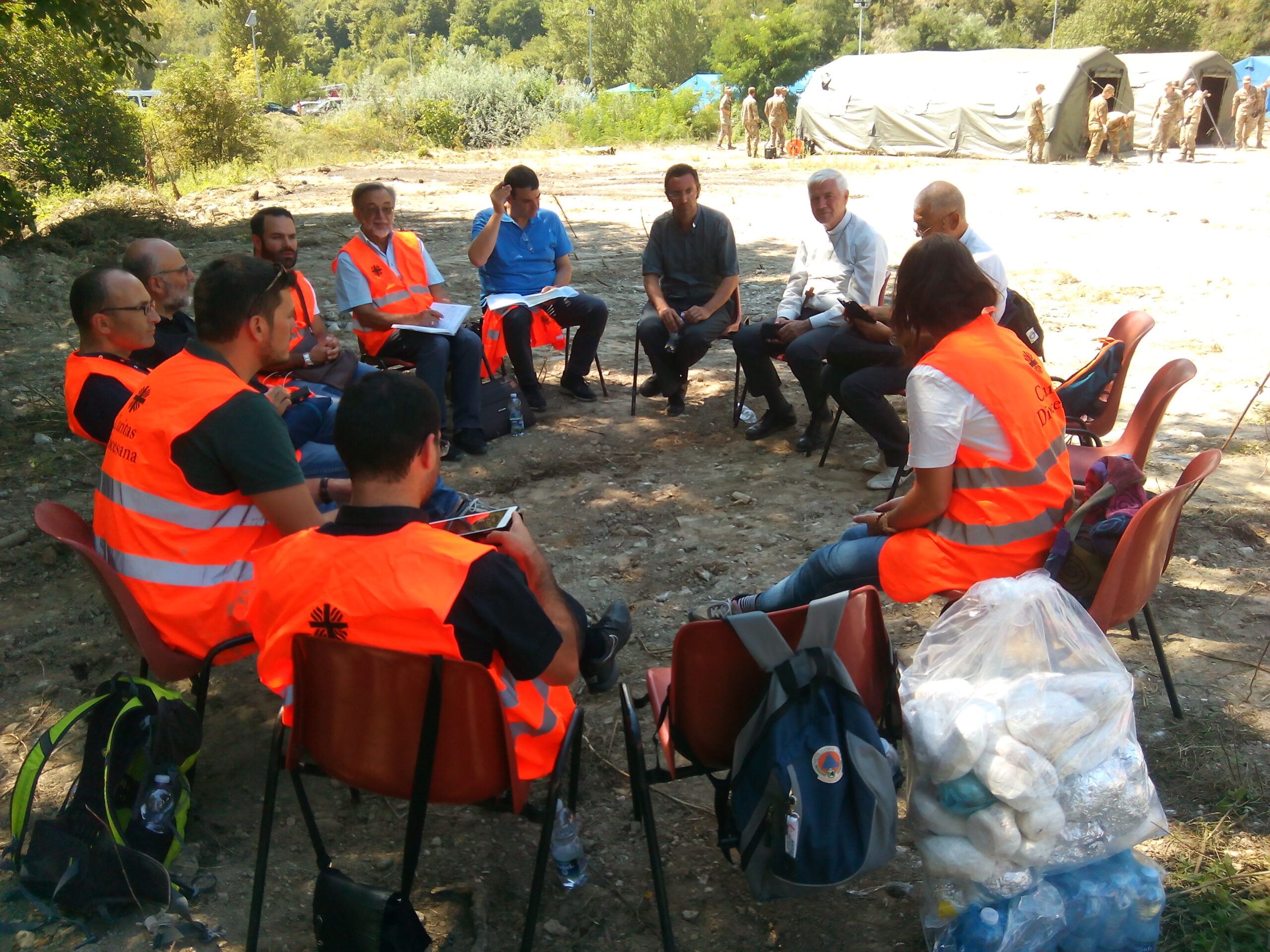 La stessa Caritas, per voce del suo co-direttore Mario Bettucci, intervistato per Emmausonline, specifica che sono attive raccolte di alimenti e vestiti «in quanto non si conoscono ancora i bisogni e i magazzini sono pieni, tanto che gli operatori stanno facendo difficoltà a smaltire tutto il materiale pervenuto». La Caritas di Macerata ha anche partecipato, nei giorni scorsi, ad un summit ad Ascoli con il vescovo Giovanni D’Ercole (leggi qui la sua omelia per i funerali delle vittime marchigiane del territorio), al fine di garantire e organizzare la “macchina” degli aiuti umanitari.
