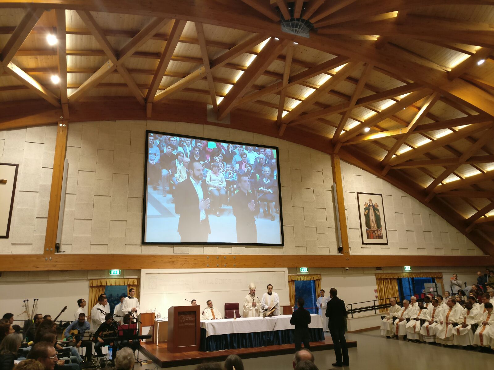 Ieri, domenica 16 ottobre, in un momento significativo di comunione diocesana – si celebrava infatti la chiusura della peregrinatio Mariae -, Antonio Barbaresi e Marco Petracci hanno hanno pronunciato il loro primo eccomi. «Pregate per noi, perché noi abbiamo l’intenzione di mettercela tutta perché il signore ci faccia giustizia»: con queste parole, interpretando i pensieri dei due ragazzi, il vescovo Nazzareno Marconi ha concluso l’omelia nella quale ha ben coniugato il senso del Vangelo della domenica con la celebrazione, in un aula sinodale gremita.