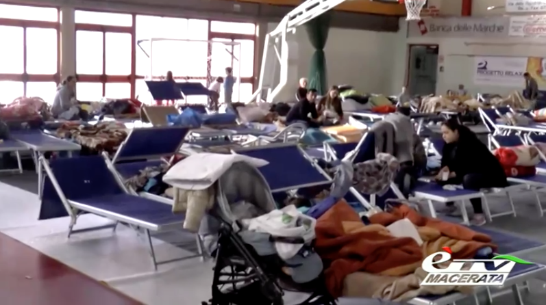 Oltre 250 lettini da spiaggia arrivati dai comuni della Costa hanno accolto una parte degli ”sfollati” di Tolentino che hanno scelto di trascorrere la notte nel palasport, uno dei cinque centri di accoglienza allestiti per l’emergenza. Famiglie, etnie diverse insieme unite dalla paura e sostenute da tanta solidarietà.