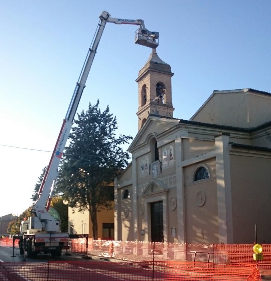 Dopo la scossa di terremoto del 30 ottobre si registrano numerosi danni alle abitazioni più vecchie di corso Garibaldi nella frazione di Passo di Treia. Aumentati i danni alla chiesa di Sant’Ubaldo, in particolare nel corpo della struttura che dà verso il versante strada. Verificata la condizione del tetto e del campanile, i tecnici hanno deciso di rimuovere la Madonna con bambino che si trovava in cima. La statua è ora in sicurezza nel deposito della nuova chiesa della Natività della Beata Vergine Maria. Ciò ha però comportato la chiusura del tratto di strada interessato, tanto da modificare la viabilità della frazione, snodo importante verso San Severino Marche e Macerata.