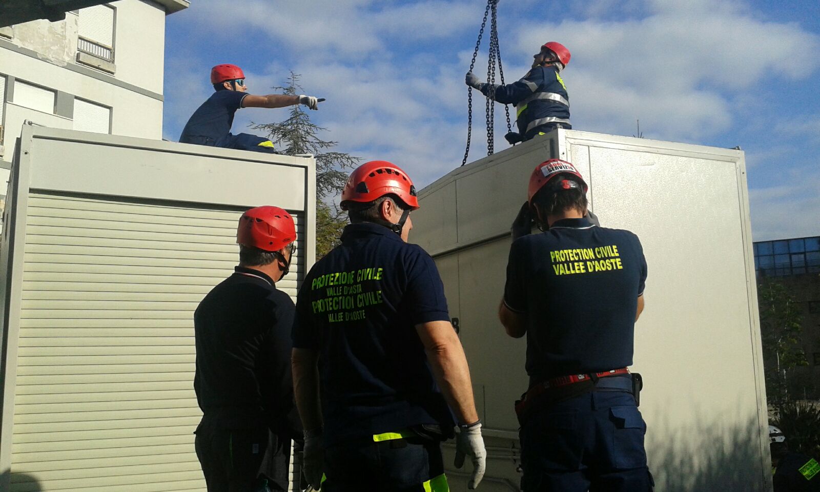 Grazie alla solidarietà della Protezione Civile della Valle d’Aosta l’Ospedale di Tolentino ha potuto allestire un punto d’intervento più sicuro di fianco del nosocomio reso inagibile dal sisma. Vediamo i volontari a lavoro.