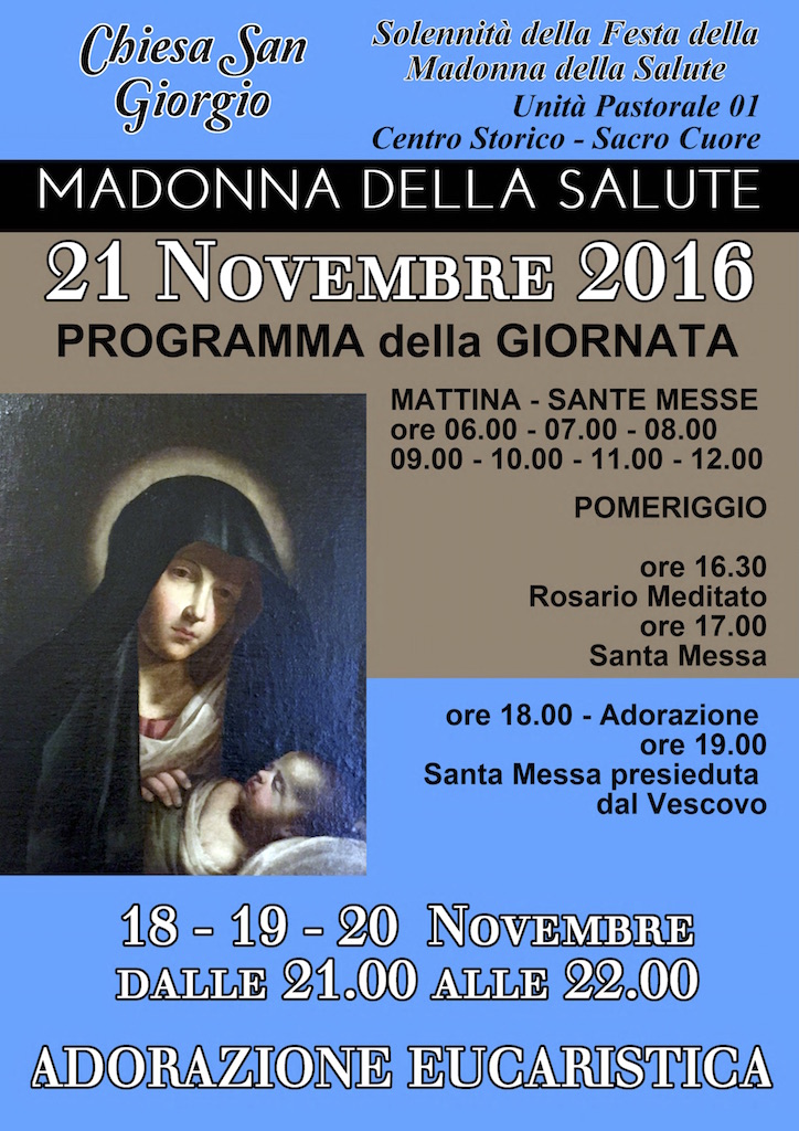 Anche quest’anno si rinnova il tradizionale appuntamento dei maceratesi con la «Madonna della salute». Per motivi di sicurezza le celebrazioni si svolgeranno nella Basilica della Mater Misericordiae seguendo il programma stabilito.