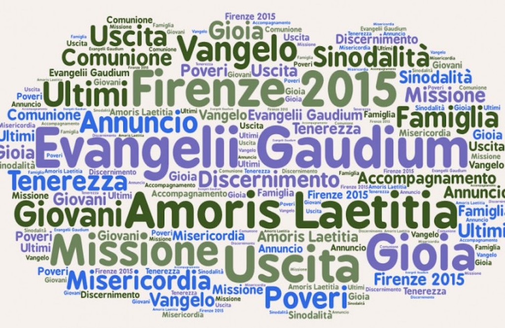 Quali i temi ricorrenti? “Evangelii Gaudium” (70), “Amoris laetitia” (40), Firenze 2015 (20), misericordia (20), iniziazione cristiana (15), sinodalità (15).