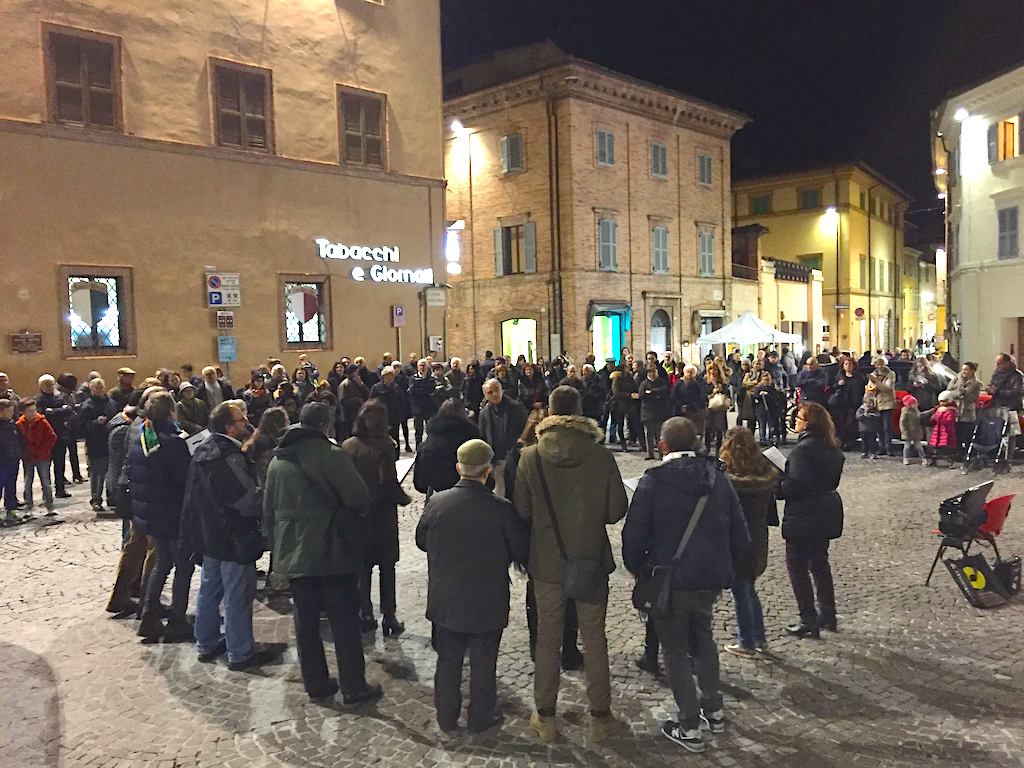 Abbiamo chiesto un commento anche al direttore del Coro Polifonico, il maestro Aldo Cicconofri: «Noi abbiamo la passione del canto ma in questo periodo abbiamo dovuto chiedere aiuto perché la nostra sede non è più agibile. Il canto in questa occasione voleva essere un modo per far arrivare un po’ di gente nel centro storico, perché purtroppo in questi giorni lo abbiamo visto sempre vuoto.