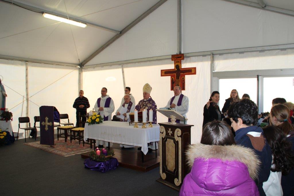 La Coldiretti Provinciale di Macerata ha celebrato domenica 18 dicembre la 66ª Giornata di ringraziamento (leggi qui l’articolo), scegliendo come sede Camerino, quale segno di attenzione e solidarietà con le popolazioni colpite dal terremoto. L’assemblea, presieduta dall’Arcivescovo della diocesi di Camerino mons. Francesco Giovanni Brugnaro, presenti i Dirigenti Provinciali Coldiretti, tra cui il presidente Francesco Fucili e direttore Giordano Nasini con il personale dei vari Servizi, i tre parroci della città e il cons. ecclesiastico don Giuseppe Branchesi, si è svolta presso la tensostruttura situata in località le Mosse. Molti i partecipanti allietati dal coro dei bambini che ha eseguito i canti di Natale.