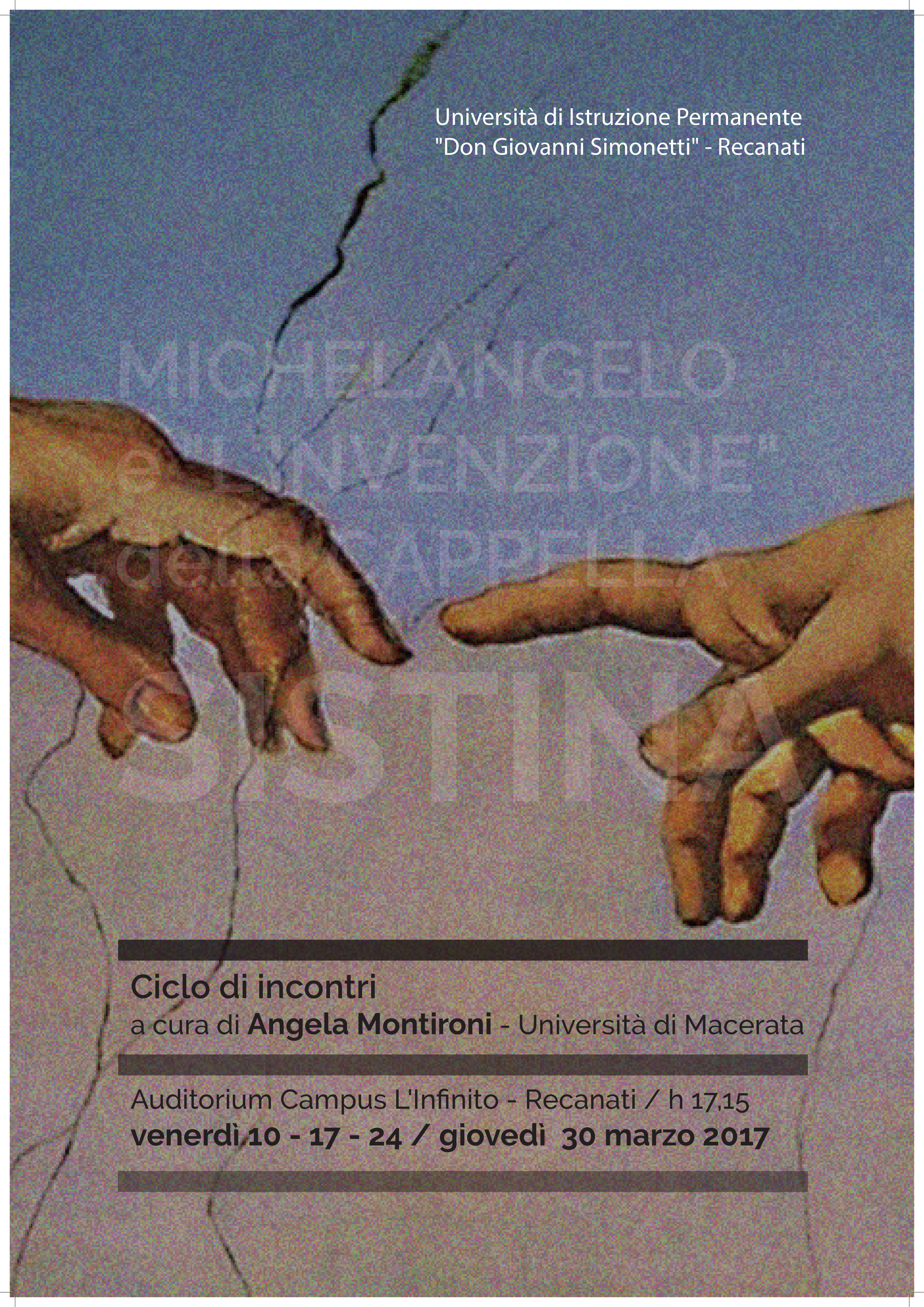 Sarà dedicato a «Michelangelo e l’invenzione della Cappella Sistina» il ciclo di incontri che l’Università di Istruzione Permanente «Don Giovanni Simonetti» di Recanati propone per le prossime settimane.