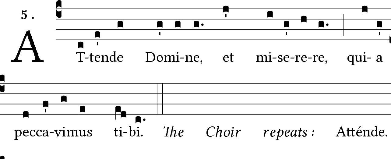 Nel tempo di Quaresima un conosciutissimo canto di ingresso è Attende Domine, un inno responsoriale gregoriano che ben si adatta alle esigenze comunitarie sia per la bellezza della linea melodica che per la sua accessibilità.
