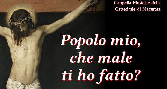 Mercoledì 5 aprile 2017 alle ore 21,15 la Parrocchia Sacro Cuore di Macerata, insieme all’unità pastorale n.1, propone la catechesi sulla Passione secondo Giovanni dal titolo “Popolo mio, che male ti ho fatto?“. Nella chiesa Sacro Cuore di Macerata sarà possibile ascoltare una meditazione a cura del parroco Don Ariel Valentin Veloz Mendez e l’esecuzione della Passione secondo Giovanni in gregoriano alternata a parti polifoniche composte dal famoso musicista spagnolo Tomás Luis de Victoria (1548-1611) eseguite dalla Cappella Musicale della Cattedrale di Macerata diretta da Carlo Paniccià.