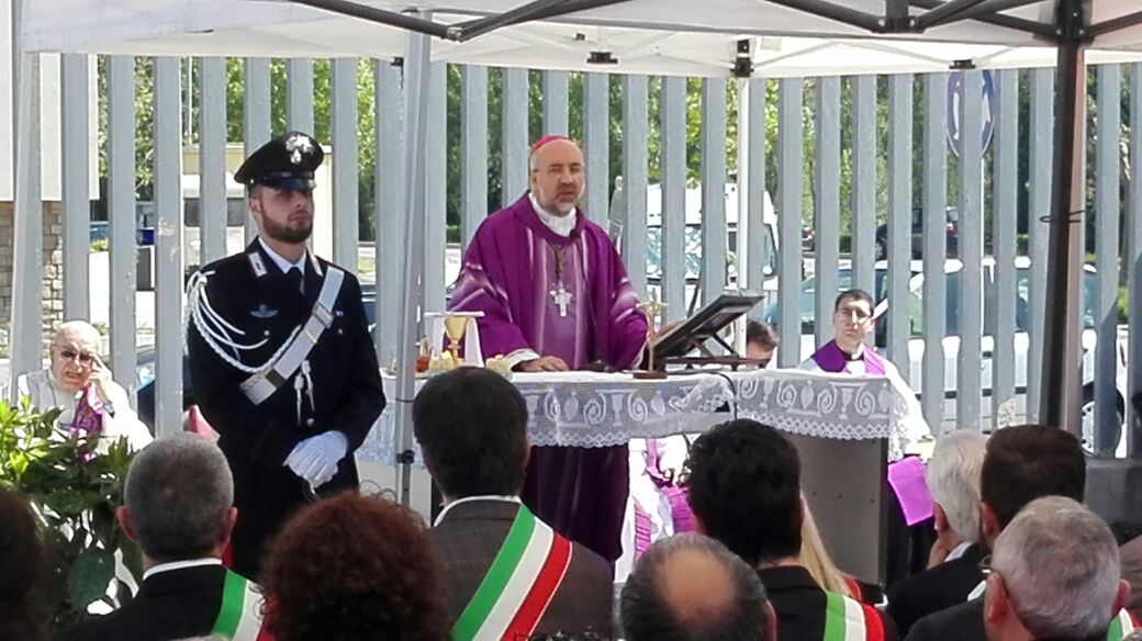 mpagnia Carabinieri di Tolentino è stata oggi pomeriggioteatro di una manifestazione inconsueta, complice il terremoto che ha pesantemente colpito tutti gli edifici religiosi storici della città. Il vescovo Nazzareno Marconi ha celebrato una Messa pasquale per i Carabinieri, in presenza di tutti i Comandanti di stazione ricadenti sotto la giurisdizione della compagnia C