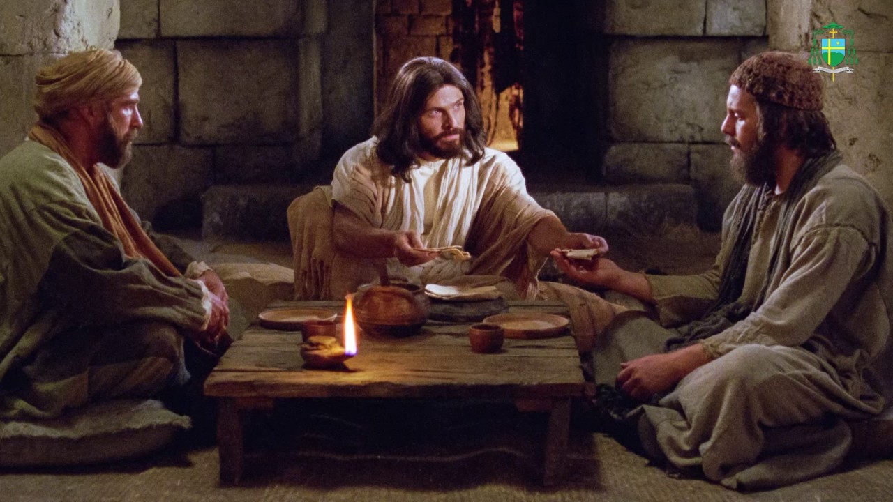 Quando fu a tavola con loro, prese il pane, recitò la benedizione, lo spezzò e lo diede loro. Allora si aprirono loro gli occhi e lo riconobbero. Ma egli sparì dalla loro vista. Ed essi dissero l’un l’altro: «Non ardeva forse in noi il nostro cuore mentre egli conversava con noi lungo la via, quando ci spiegava le Scritture?».