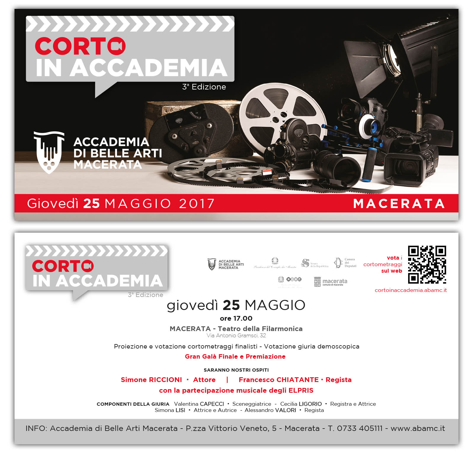 Un gala ricco di sorprese e musica con una giuria tecnica d’eccezione per assegnare i premi di questa edizione di Corto in Accademia. Giovedì 25 maggio a partire dalle 17 torna l’evento a ingresso libero dell’Accademia di Belle Arti di Macerata rivolto a tutti gli appassionati di arte e cortometraggio. Dopo mesi di selezioni tra i tantissimi cortometraggi arrivati in concorso dalle Accademia di tutta Europa, al teatro della Filarmonica di Macerata un pomeriggio e una sera di proiezioni dove il pubblico potrà gustarsi i 10 corti finalisti selezionati dalla giuria internazionale. A contendersi il podio alla finale di Corto in Accademia 2017 sono gli studenti Farid Amin (ABA Torino), Roberta Baldas e Giulia Agnese (ABA Torino), Giuseppe Cacciola (ABA Palermo), Gloria Dall’Arche (ABA Venezia), Camilla Magnalardo (ABA Macerata), Roberta Masala (ABA Sassari), Alia Simoncini (ABA Macerata), Andrea Speca (ABA Macerata), Marco Villari (ABA Catania) e Yue Yang (ABA Torino). Per maggiori informazioni e per votare online i 10 finalisti si può consultare il sito internet del concorso (http://cortoinaccademia. abamc.it/it). Il più votato online otterrà il Premio web.