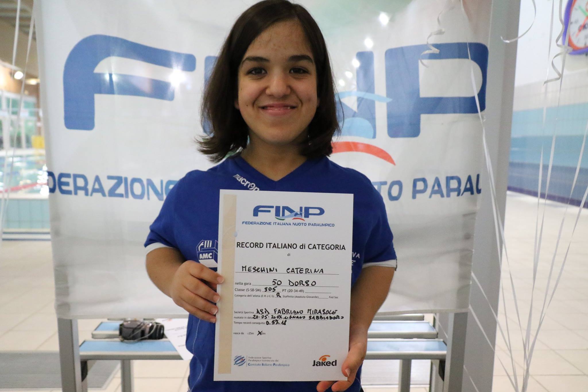 Convocazione in nazionale per Caterina Meschini. L’atleta farà parte della squadra Nazionale agli European Para Youth Games 2017. I nomi sono stati resi noti del ct della Nazionale Riccardo Vernole. La promettente Meschini fa parte della Polisportiva Mirasole. Nei 50 metri dorso, Caterina ha recentemente siglato il tempo di 57” 78, nuovo record italiano per la categoria “Ragazzi”.