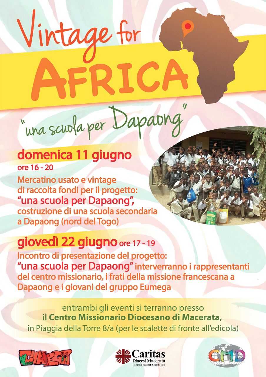 Dopo la raccolta fondi per il progetto “Una scuola per Dapaong” – veicolata da un mercatino dell’usato e vintage che ha avuto luogo domenica 11 giugno- l’associazione Eumega propone un nuovo appuntamento per presentare l’iniziativa nel dettaglio.