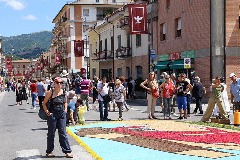Boom di visitatori alla 25° edizione del Festival nel segno della speranza e rinascita post-sisma. 90mila petali colorati hanno fatto da cornice alla grande voglia di ripartenza dell’intero territorio dell’Alto Maceratese con migliaia di turisti italiani e stranieri che hanno riempito strade e piazze nel weekend. Edizione dei record organizzata da Comune e Pro Loco insieme agli oltre quattrocento volontari e alle associazioni cittadine, che hanno trasformato il cuore del paese in un piccolo museo a cielo aperto. Una tradizione che è viva ancora oggi e si è rinnovata grazie al Gruppo Med con una vetrina online in continuo aggiornamento, dirette social sulla pagina Facebook seguite da migliaia di persone in tutto il mondo e l’innovativa App con tecnologia beacon, realizzata dal ramo Med Innovations di Stefano Parcaroli per vivere un’esperienza unica a 360°.