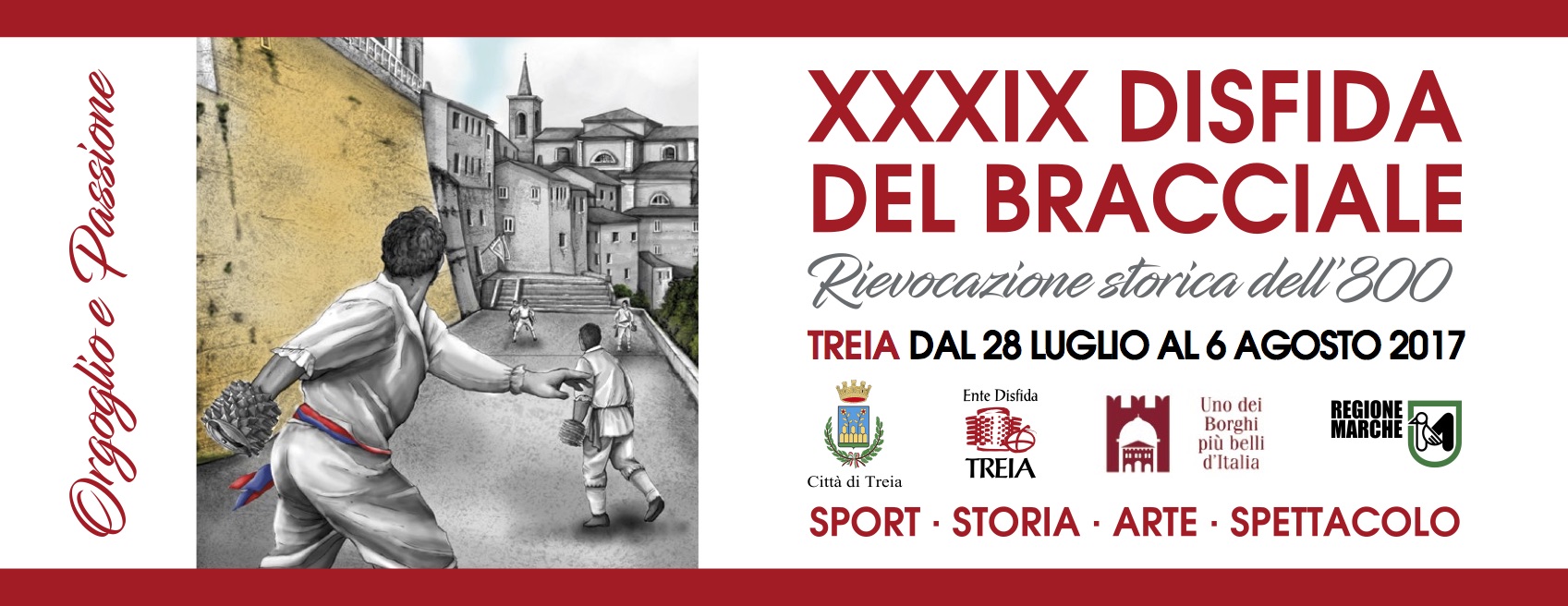 Il ricco calendario della Disfida del Bracciale 2017, promossa dall’Amministrazione Comunale della Città di Treia e dall’Ente Disfida, con il patrocinio della Regione Marche e il sostegno delle imprese locali, sarà presentato in anteprima a Macerata presso la Sala Giunta del Palazzo della Provincia domani mercoledì 26 luglio alle ore 11.30.