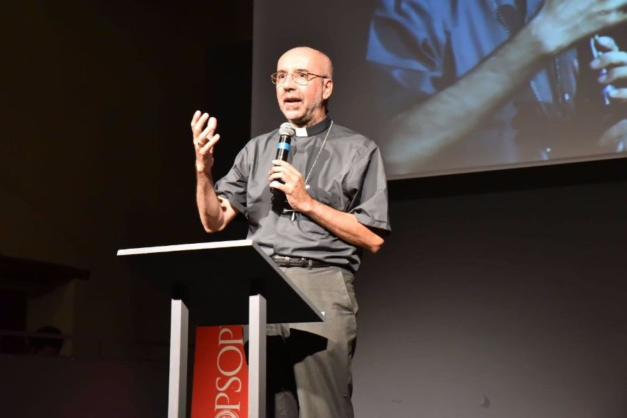 Il Vescovo ricorda come la filosofia si poneva “in piazza per dialogare con la realtà”. Citando san Benedetto, mons. Marconi afferma che “il sorriso è perdono perché esso esclude la paura”. Ricorda poi Aristotele che scrive come “Dio ride e lo fa sempre a fin di bene”. Il sorriso è, dunque, legato alla gioia, mentre il ghigno è un sorriso falso che deriva da un intimo malvagio. Il “sorriso di Dio” è invece quella di Isacco, quando fa gli scherzi alle sue creature.