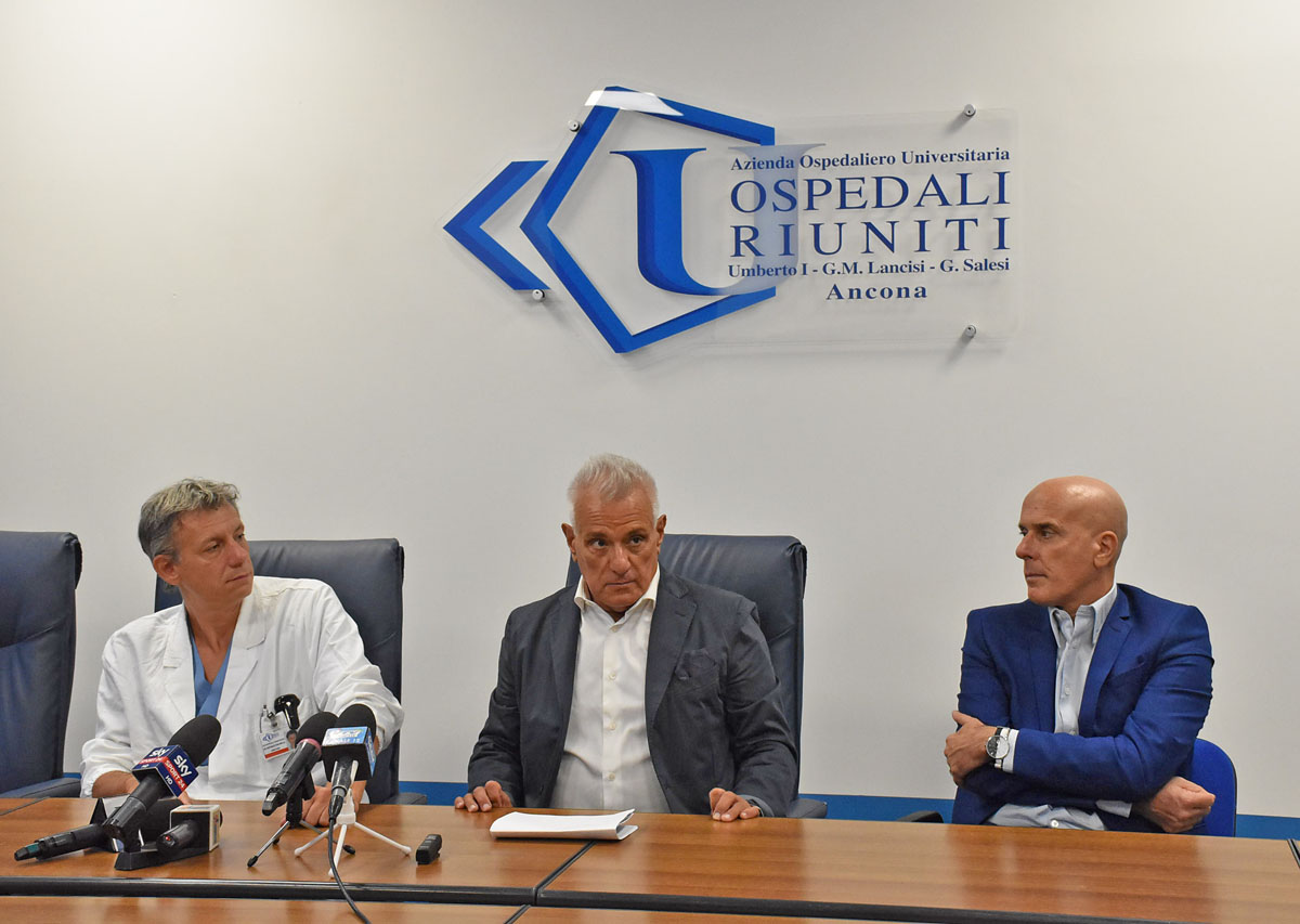 «Valentino sta bene e questa credo che sia la cosa più importante per noi e i tifosi». Lo ha detto il professor Raffaele Pascarella, direttore dell”Unità operativa di Ortopedia e Traumatologia nel corso della conferenza stampa all’ospedale di Torrette sulle condizioni di Valentino Rossi ricoverato per le frattura di tibia e perone riportate in un incidente di moto ieri a Borgo Pace mentre si allenava. Intervento “perfettamente riuscito” questa notte nel reparto dove sono stati effettuati 1200 interventi chirurgici sui 2000 interventi di ortopedia e traumatologia svolti quest’anno nell’Azienda Ospedaliera Universitaria – Ospedali Riuniti di Ancona.
