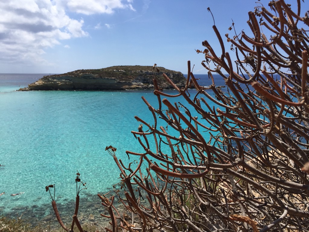 In queste giornate di inizio agosto Lampedusa è presa d’assalto dai turisti. Le spiagge più belle sono affollate, non si trova posto. Eppure ci sono larghi spazi di silenzio da scoprire. Basta allontanarsi dalle spiagge più frequentate, percorrere valloni suggestivi che conducono a baie isolate, oppure guadagnare a fatica un’altura e lì fermarsi a sedere, in una bella solitudine che trasmette un forte senso di libertà e una angoscia leggera.