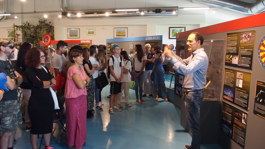 Ad accogliere ospiti e visitatori nel moderno istituto superiore la dirigenza, i docenti e molti studenti che hanno preso parte anche in forma attiva all’allestimento della mostra entrando in contatto con gli exhibit interattivi che spiegano le straordinarie qualità di piante e animali. Il racconto sviluppato nella mostra parte dalle storie dei supereroi dei fumetti con Capitan America e il suo famoso scudo indistruttibile, così i visitatori sono condotti nel mondo delle strategia di difesa in natura; Flash introduce al mondo della velocità e dell’abilità nella corsa di molti animali e si misurerà con i primatisti animali; poi la Donna Invisibile in compagnia degli animali maestri del camuffamento.