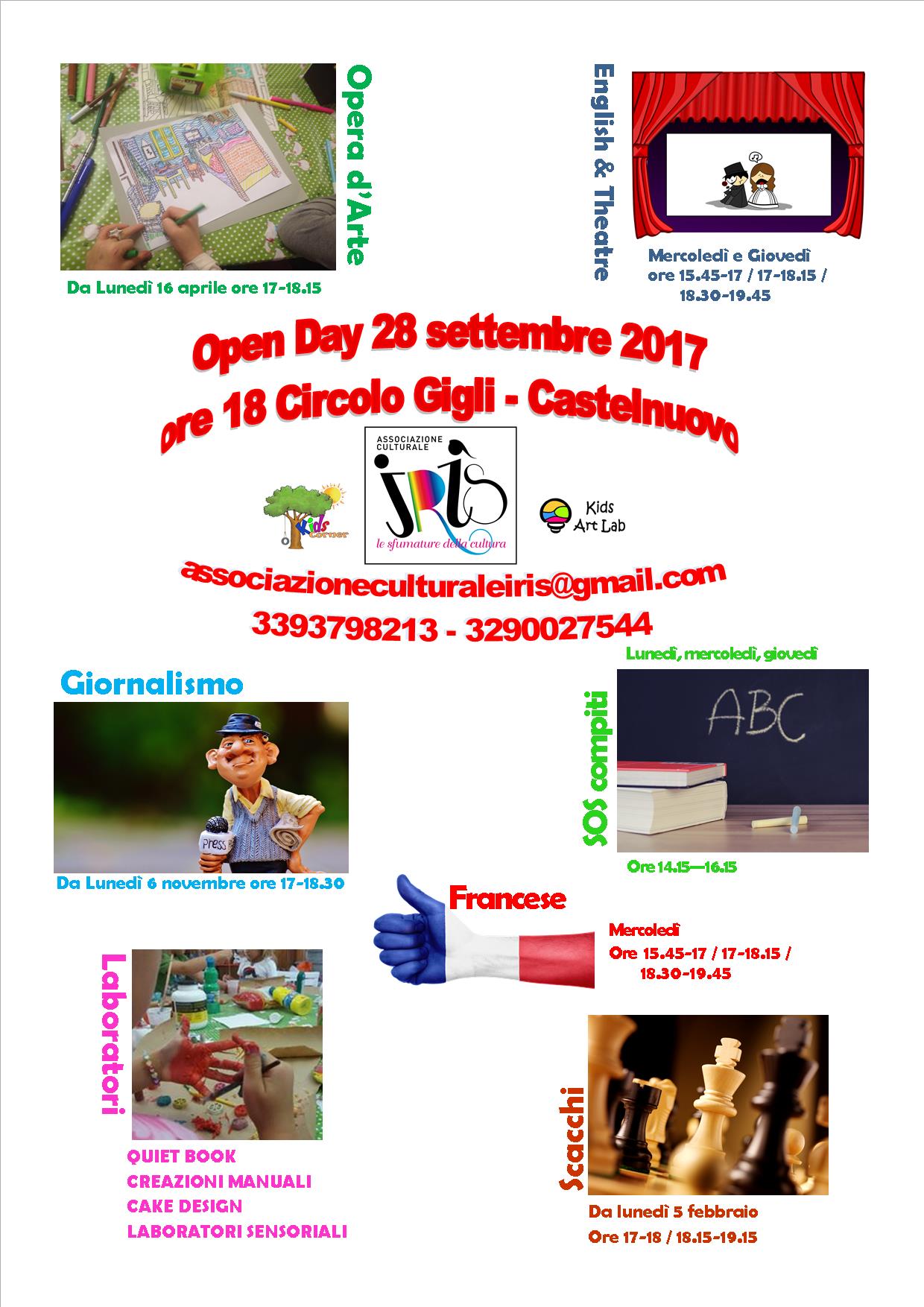 Anche quest’anno l’Associazione Culturale Iris rinnova l’invito a partecipare ai nuovi corsi promossi per i soci e per coloro che vogliono conoscere meglio questa realtà. Con l’Open Day di giovedì 28 settembre, alle ore 18 presso il Circolo B. Gigli di Castelnuovo, verranno presentati i percorsi che le ragazze dell’Associazione, ormai da due anni, mettono in programma fino al termine della scuola.