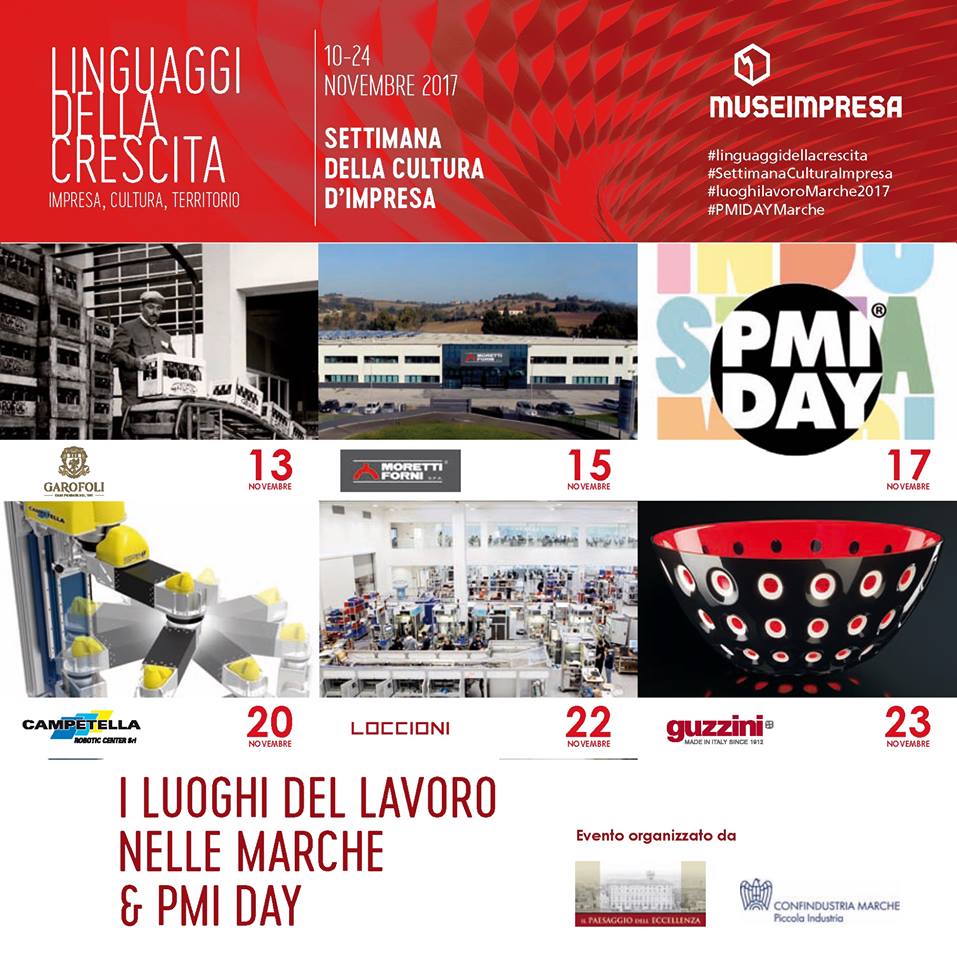“In particolare quest’anno nelle Marche – ha proseguito Mingarelli – abbiamo pensato di arricchire ulteriormente l’edizione 2017 della manifestazione inaugurando la collaborazione con l’Associazione Il Paesaggio d’Eccellenza, impegnata nella valorizzazione della cultura d’impresa nelle Marche, che ha inserito l’iniziativa nell’articolato programma nazionale della “XVI Settimana della Cultura d’Impresa” rassegna promossa da Museimpresa e Confindustria. Grazie a questa sinergia si arricchisce il calendario di visite ad alcune tra le più importanti realtà produttive della regione con l’intento di diffondere e valorizzare la Cultura d’Impresa e il Patrimonio industriale materiale e immateriale delle Marche.”