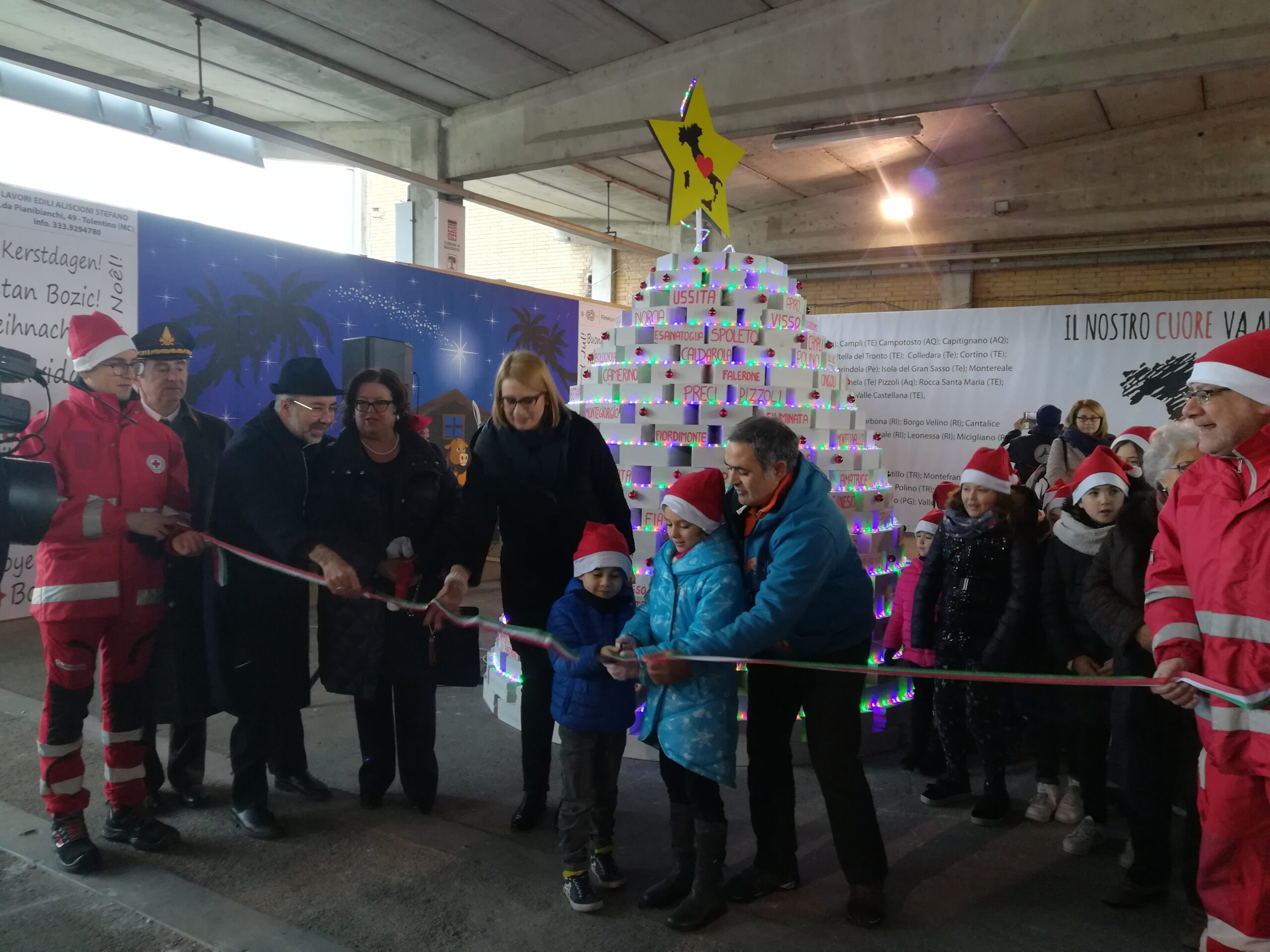 Mons. Marconi si è rivolto ai tanti bambini presenti e soprattutto a quelli del coro Grilli e Cicale di Casette Verdini che hanno emozionato il pubblico presente con i loro bellissimi canti di Natale. All’inaugurazione erano presenti anche l’on. Irene Manzi, il com. dei vigili del fuoco di Macerata Pierpaolo Patrizietti e Rosaria Ruiti Del Balzo, presidente della Croce Rossa Italiana di Macerata. L’organizzatore, Gianluca Di Iorio, dell’agenzia di comunicazione Cirix, ha ricordato come l’albero di Natale, realizzato con 500 mattoni, su 140 dei quali c’è scritto il nome dei Comuni terremotati del Centro Italia, sia un segno tangibile di solidarietà nei confronti di tutte le persone che soffrono a causa delle conseguenze del sisma, e costituisca un auspicio affinché la ricostruzione cominci il prima possibile.
