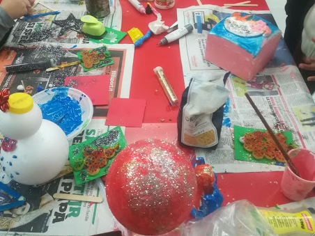 Tra pupazzi di neve, palline di polistirolo e alberi di legno, il tutto spolverato con quantità industriali di brillantini, i ragazzi hanno creato piccole decorazioni che hanno portato a casa soddisfatti e felici.