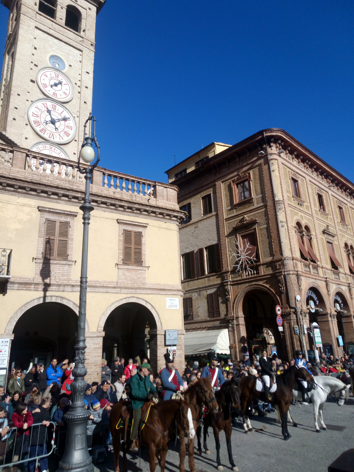 Ad aprire la sfilata dei gruppi a cavallo le Giacche Verdi e una rappresentanza del gruppo storico a cavallo di Tolentino 815 del 2° Cavalleggeri.