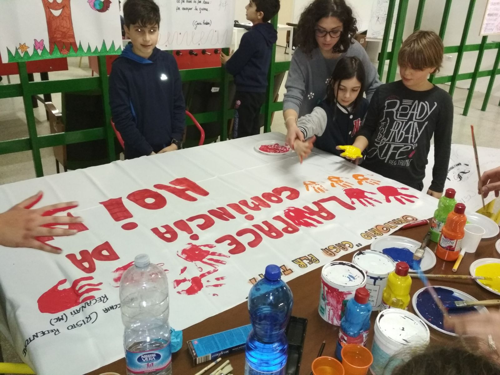 Alterniamo le nostre mattine tra studio, preparazione delle attività da svolgere nelle scuole e recarci nelle scuole a sensibilizzare i ragazzi riguardo alcune tematiche come la legalità, l’ambiente, i diritti umani, il diritto al cibo ed orientamento al futuro. Siamo stati nelle scuole primarie Istituto comprensivo “Luca della Robbia” di Appignano, “Enrico Medi” di Macerata (località Vergini), Le Grazie (Recanati); scuole medie “Locatelli” di Tolentino, Convitto Nazionale G.Leopardi di Macerata e Istituto Comprensivo “B.Gigli” di Recanati; scuole superiori alberghiero di Cingoli, liceo delle scienze umane, linguistico e scienze applicate di Recanati e l’IPSIA di Macerata. Gli incontri con le classi sono generalmente 3: nei primi due si conosce la Caritas e il progetto, si approfondiscono le tematiche con attività, visione di video e canzoni, coinvolgendo i ragazzi nella discussione e nella condivisione delle idee; l’ultimo incontro, invece, prevede una testimonianza riguardo le tematiche trattate durante gli incontri. Per l’orientamento sono coinvolti i vecchi civilisti, per le tematiche del cibo e dell’ambiente alcune ragazze che hanno fatto esperienza in Africa e alcuni volontari della Bottega Equo e Solidale.