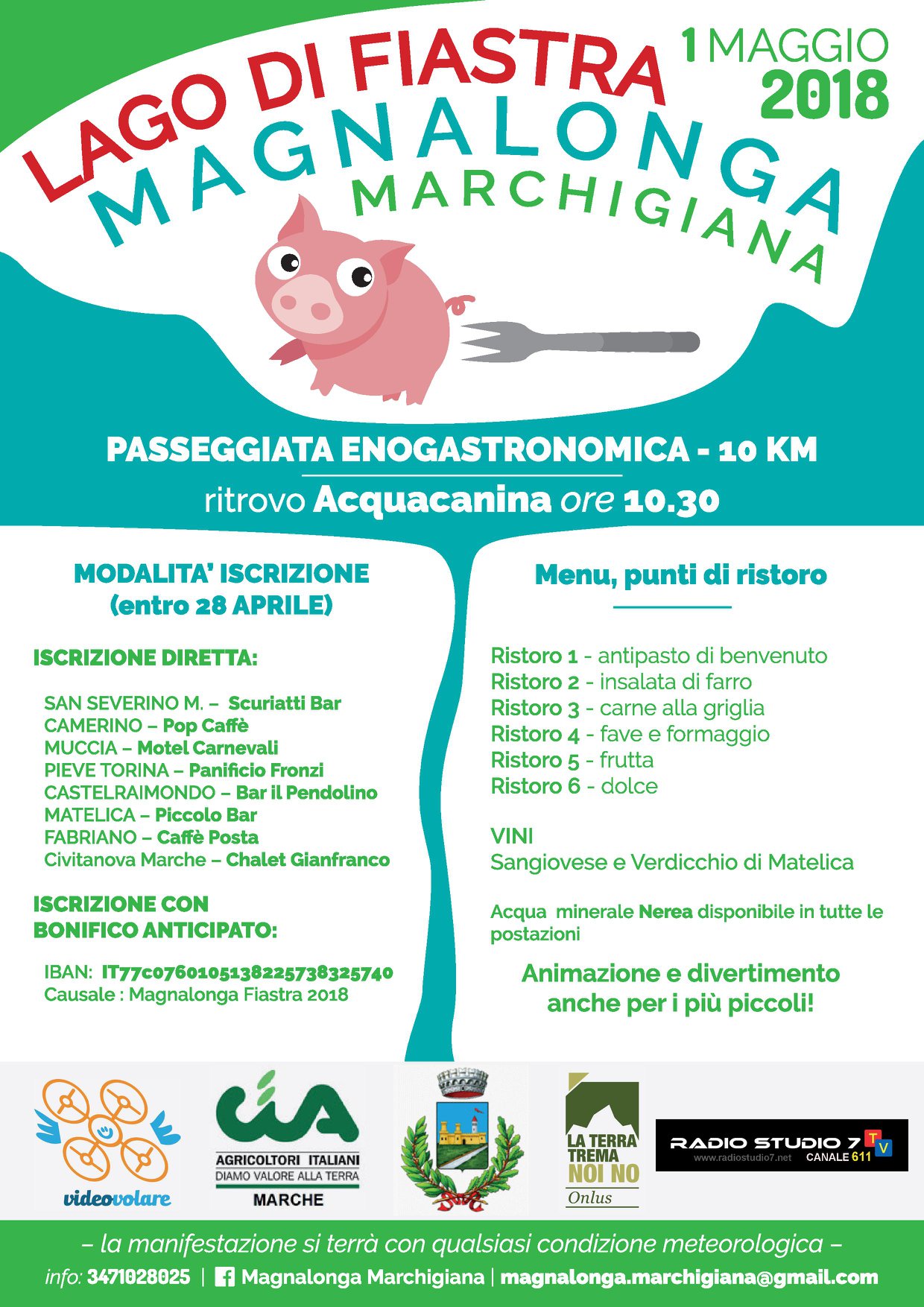 La Cia – Confederazione agricoltori di Macerata supporterà l’iniziativa invitando i cittadini a partecipare a questa passeggiata enogastronomica che si estende su un tratto di 10 chilometri immersi nella natura e il cui ricavato sarà interamente devoluto all’associazione “La terra trema noi no”.