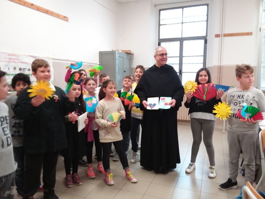 Purtroppo, il bellissimo cappellone trecentesco di Tolentino, adornato con la storia del taumaturgo del Piceno, non è più visitabile a causa dei danneggiamenti subiti dal sisma del 2016, e gli insegnanti di religione delle classi terze, quarte e quinte elementari Elisabetta Nardi, Giuseppina Bellagamba, Biancarosa Re, Cecilia De Baggis, unitamente agli insegnanti di classe Franca Monti, Alessandro Rinaldi, Mariangela Lanzi, Manuela Pirro e Maria Chiara Vecchione e in accordo con la Dirigente dott.ssa Catia Scattolini, hanno invitato, il 3 maggio 2018, il padre priore Giustino Casciano osa, a presentare la figura e l’opera di San Nicola da Tolentino.