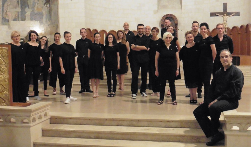 I cantori della Cappella musicale della Cattedrale di Macerata festeggiano il Maestro Carlo Paniccià per i 25 anni di direzione di questa formazione corale.