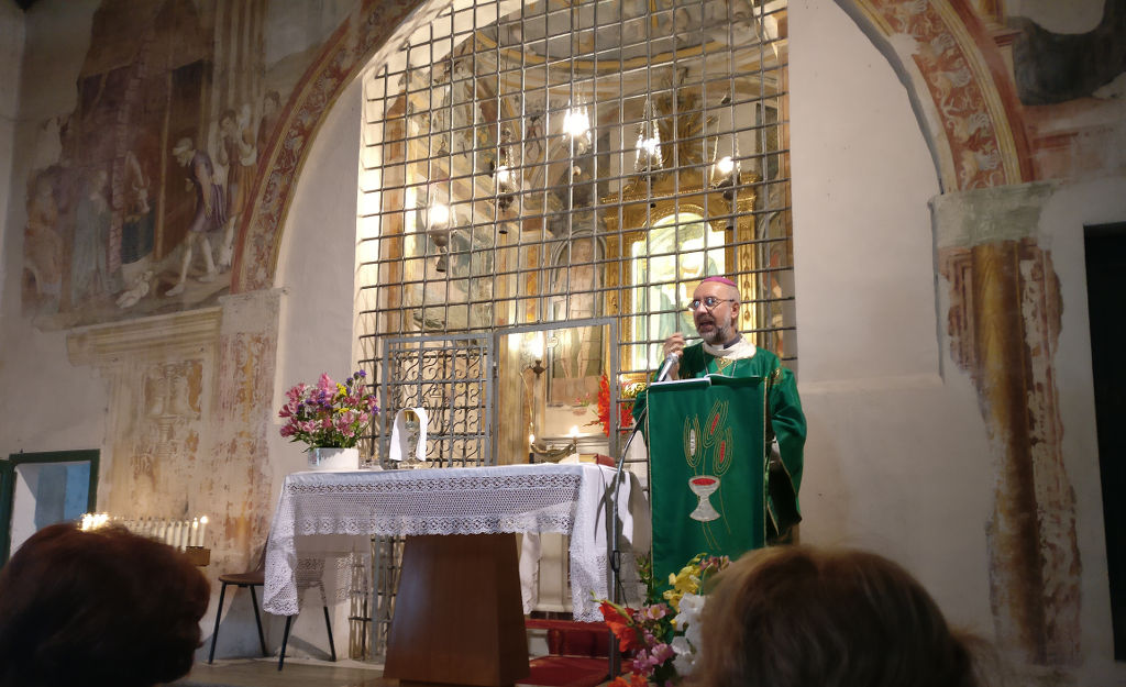 «In un tempo di diminuzione dei sacerdoti capita anche al vescovo di rimpiazzare qualche sacerdote come don Marino, impegnato al campo scuola», ha esordito il vescovo introducendo la celebrazione eucaristica.