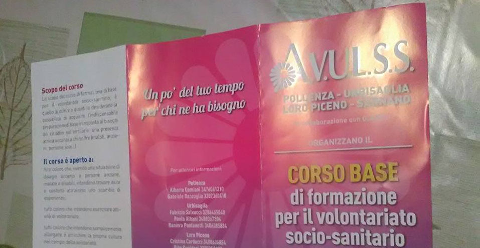 Ecco allora che è n partenza il prossimo 10 settembre, alle ore 21,00 nel salone della parrocchia Santa Famiglia a Casette Verdini di Pollenza, un corso base gratuito di formazione per il volontariato socio-sanitario, organizzato dalle Avulss di Pollenza, Urbisaglia, Loro Piceno e Sarnano: 19 incontri, tenuti da esperti dell’ambito socio-sanitario, medico e da responsabili Avulss.