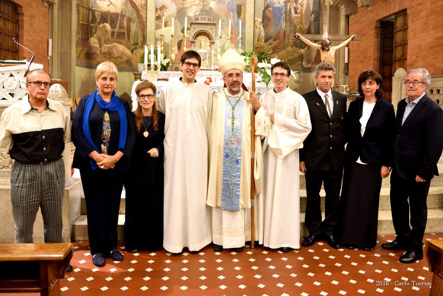 La celebrazione eucaristica iniziata puntualmente alle 18.30 è stata presieduta da mons. Nazzareno Marconi che durante l’omelia ha sottolineato “l’offerta viva” non di semi di grano ma di due giovani, Luca e Filippo, appartenenti al movimento mariano ecclesiale “Figli del Sacro Cuore” che si sono presentati al Vescovo per proseguire il loro cammino verso il sacerdozio.