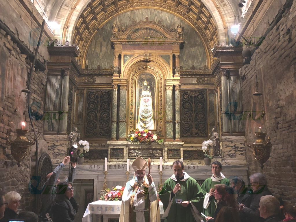 I pellegrini sono partiti in pullman da Macerata, predisponendosi, in clima di preghiera, a ricevere questo grande dono. Arrivati nella città mariana, dopo l’accoglienza e il discorso introduttivo della Fondatrice e Responsabile dell’Associazione, si sono avviati in processione intorno al Santuario, con canti e riflessioni, fino ad entrare nella Basilica Inferiore.