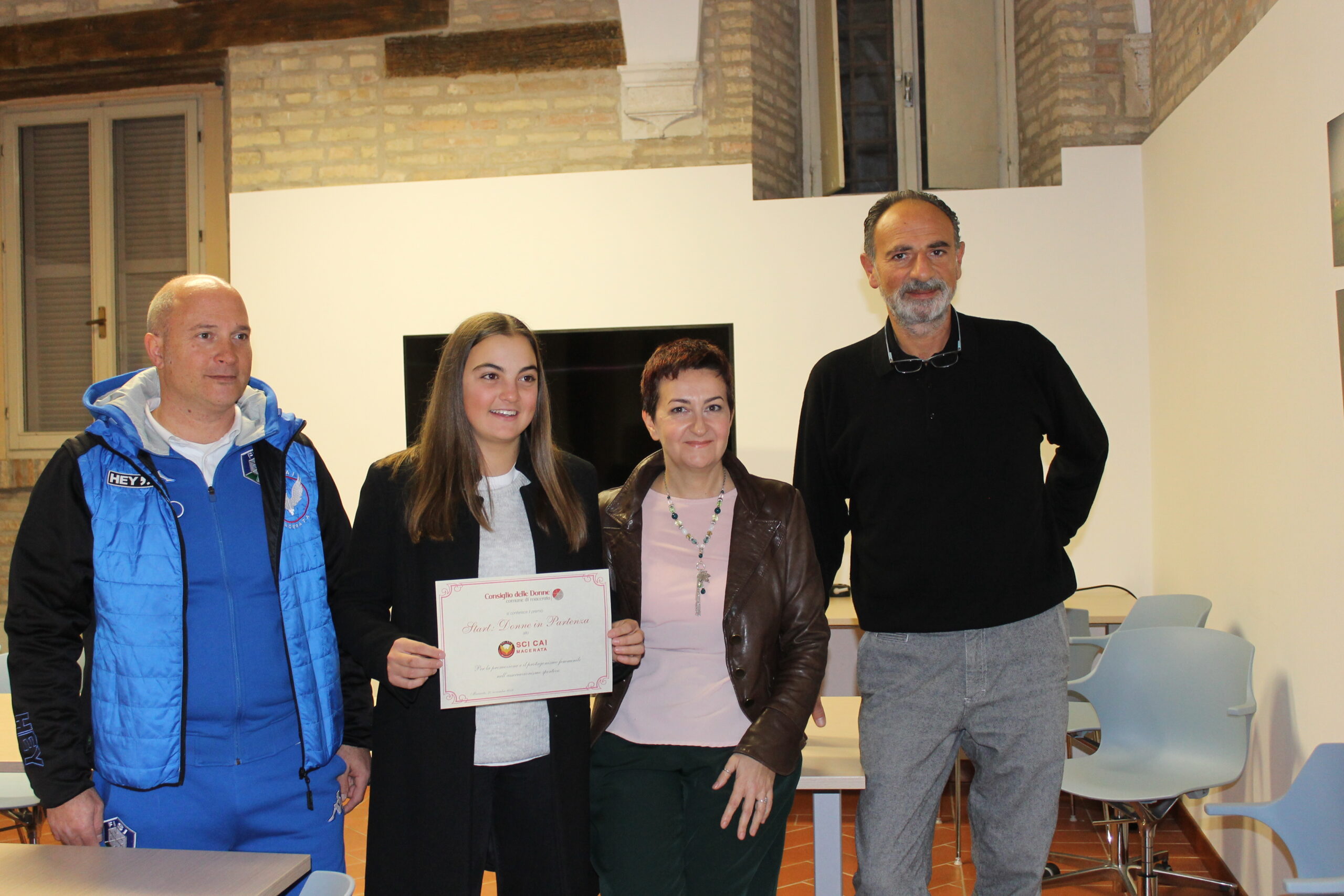 Si chiama così il progetto del Consiglio delle donne dedicato a donne e sport che oggi, alla presenza della presidente del Consiglio delle donne Ninfa Contigiani, di quello del Consiglio comunale Luciano Pantanetti e dell’assessore allo Sport Alferio Canesin, ha visto assegnare un premio all’ASD Sci Cai di Macerata.