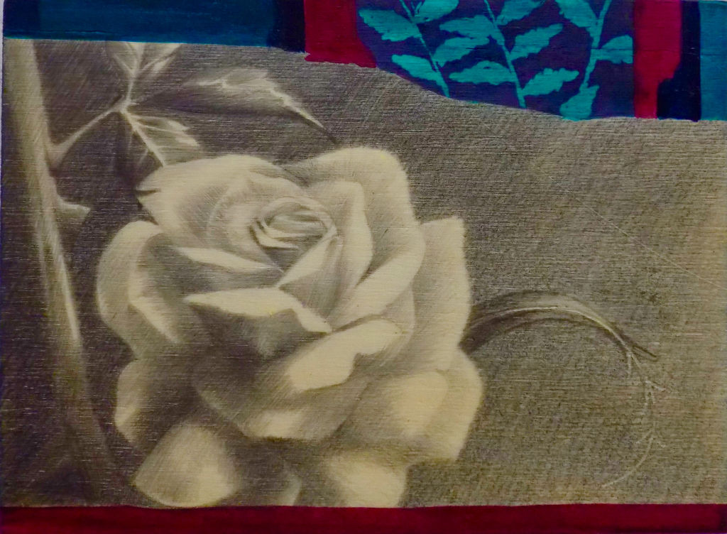 Questa ipotesi di interpretazione dei dipinti di Antonio Delle Rose in questa mostra può essere letta in una chiave leopardiana: «non c’è uomo così profondamente persuaso della nullità delle cose, della certa e inevitabile miseria umana, il cui cuore non s’apra all’allegrezza anche la più viva…» (Zibaldone, 2 gennaio 1829). Ossia l’uomo si vuole avvicinare alla rosa che rappresenta il bello ed il sublime, ma il dolce incanto si spezza subito al contatto con il dolore delle spine delle rose che proteggono il gambo affinché non venga reciso e muoia il fiore.