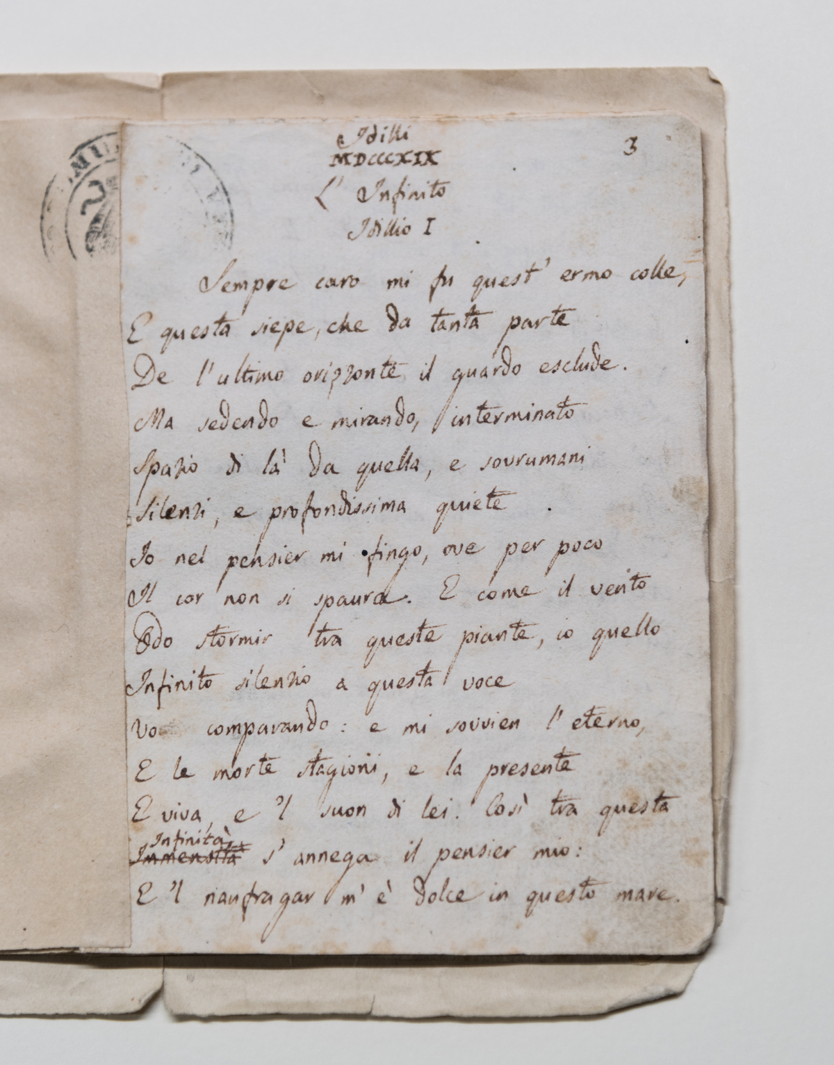 Recanati: l’Infinito di Leopardi, fino al 19 maggio in esposizione al museo di Villa Colloredo Mels