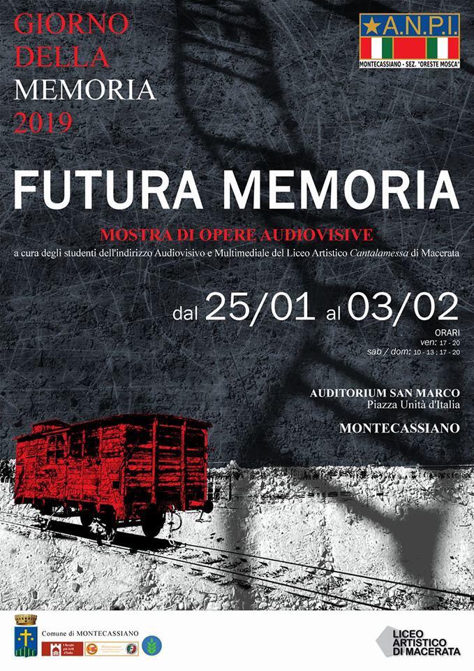 Quest’anno Montecassiano celebra la ricorrenza internazionale con una mostra realizzata dai giovani, da coloro che costruiranno il futuro delle città e dei Paesi. “Futura memoria” è il titolo dell’esposizione che raccoglie opere audiovisive realizzate dagli studenti dell’indirizzo Audiovisivo e Multimediale del liceo artistico Cantalamessa di Macerata. La mostra, è stata organizzata dalla sezione montecassianese “Oreste Mosca” dell’Anpi, in collaborazione con il liceo Cantalamessa e il Comune di Montecassiano e sarà inaugurata venerdì 25 gennaio all’auditorium San Marco in piazza Unità d’Italia.
