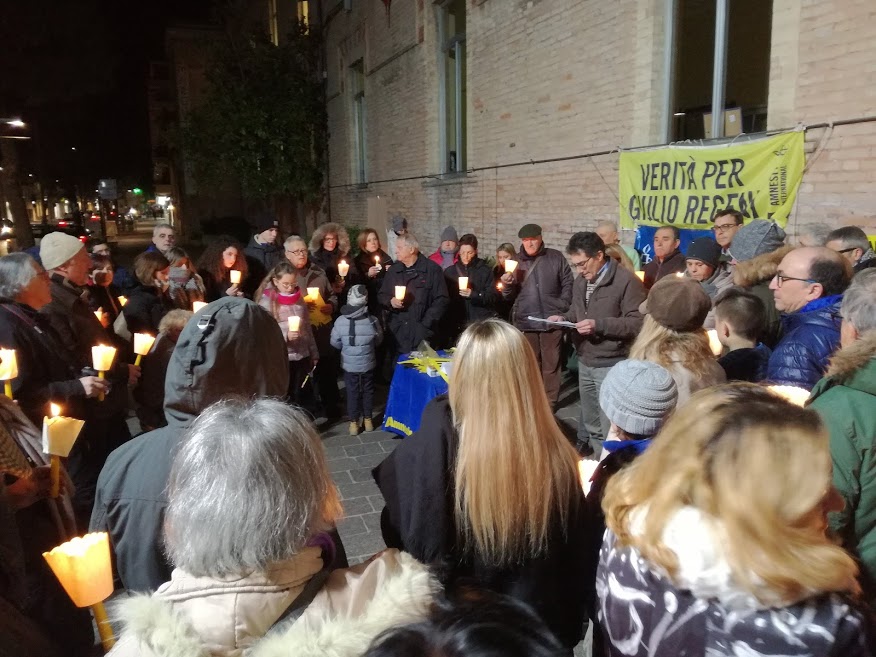 Per il secondo anno consecutivo, venerdì 25 gennaio Porto Recanati si unirà ad Amnesty International Italia e ad oltre cento città italiane: alle 19.41 verranno accese candele per ricordare l’ora esatta in cui il giovane invio l’ultimo sms prima di cadere nelle mani dei suoi aguzzini.